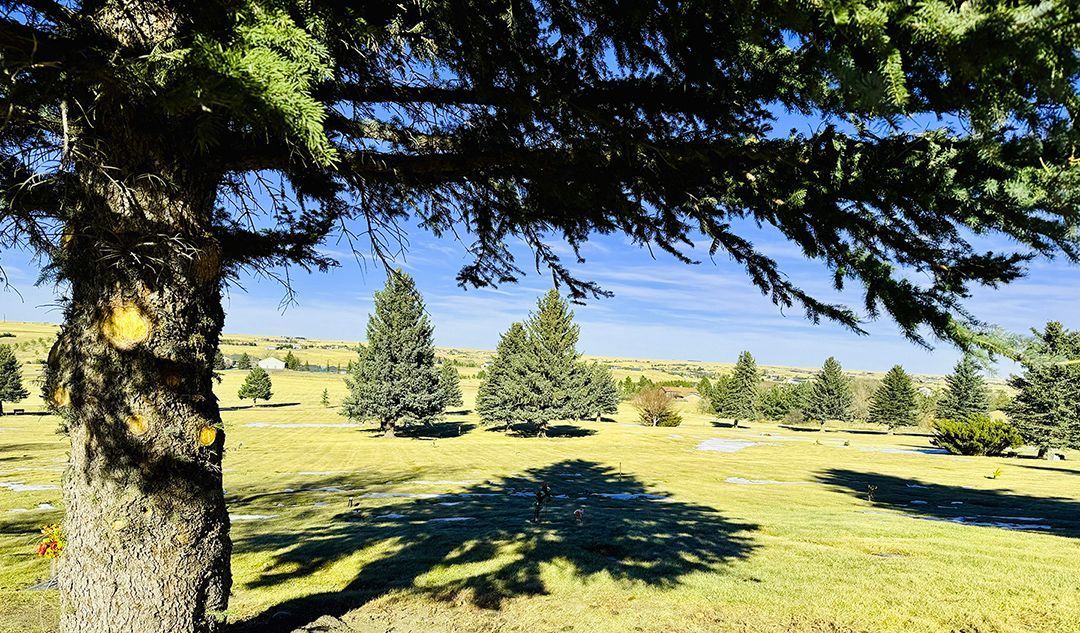 Conveniently located less than three miles from downtown on Yellowstone Road, our cemetery in Cheyenne, WY, is just a short 11-minute drive from our funeral home. Mountain View Memorial Park is open to families from all over Laramie County and is well-maintained by our cemetery staff throughout the year, providing a picturesque and tranquil setting for a loved one’s final resting place. Our Cheyenne cemetery is a spacious 40-acre lot of level, open meadow with space for many individual or family plots. Pets are welcome to be buried or interred among their human family members.